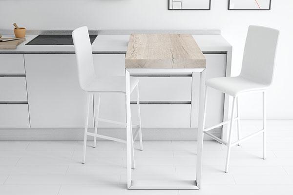 Barra 90 es un diseño que reúne todas las características necesarias para crear espacios que mejoran la rutina diaria. La colección de Cancio está pensada para ahorrar espacio en la cocina. Su mecanismo de desplazamiento de 90 grados permite el máximo aprovechamiento del mueble de cocina, ya que cerrada puede quedar contigua a la encimera y una vez desplegada, ofrece espacio suficiente para el número de comensales que se desee.