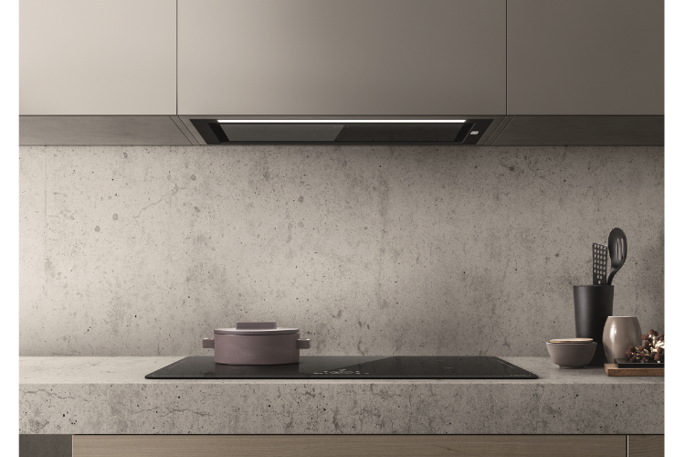 GetUp de Elica es la campana oculta creada para satisfacer las necesidades de espacio, alto rendimiento y estilo. Se han diseñado cuatro versiones que se adaptan perfectamente a las cocinas contemporáneas, en las que la funcionalidad suele combinarse con el deseo de sorprender. GetUp está disponible con acabados total black, acero inoxidable, hierro fundido y naked. Este último es la máxima expresión de la personalización del producto: de hecho, es posible utilizar el mismo material de la encimera de la cocina también para el revestimiento de la encimera GetUp, creando un aspecto uniforme y lineal.