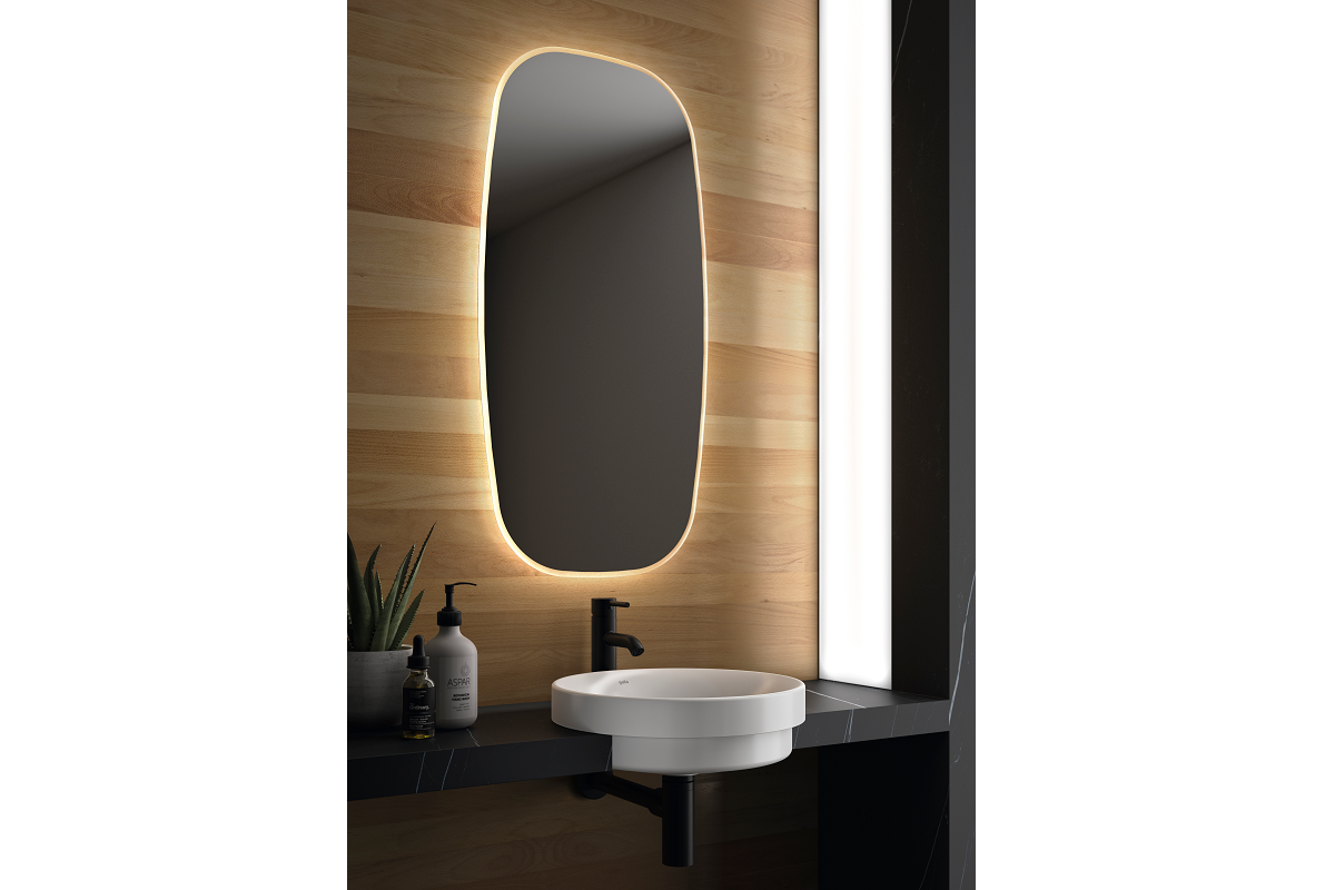 Siguiendo las tendencias más actuales, los nuevos modelos de Gala ofrecen siluetas redondeadas y discretos marcos en variedad de colores: blanco, negro y oro. Es el caso del espejo Eire, de diseño rectangular con bordes curvos, y del espejo Moira, ovalado. Ambos modelos son retroiluminados, con luz led con una temperatura de color de 5700ºK, ideal para dar luminosidad al baño; y están fabricados en cristal es de 4 mm. Además, tanto el espejo Eire como el Moira se pueden adquirir sin marco exterior, una opción estupenda para los interiorismos más minimalistas.