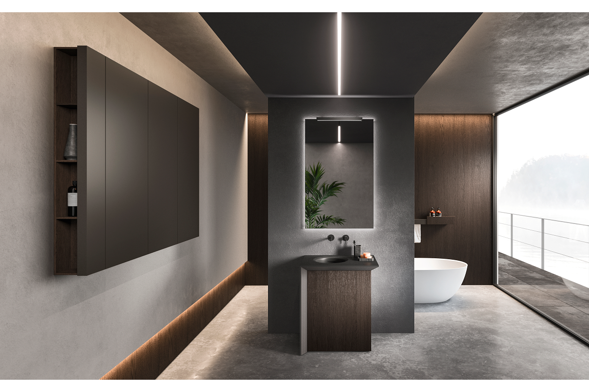 MODO Project de Altamarea (diseño de Franco Driusso) es un sistema de baño transversal que permite realizar la misma idea de diseño con todos los acabados del sistema, sin variaciones sustanciales.