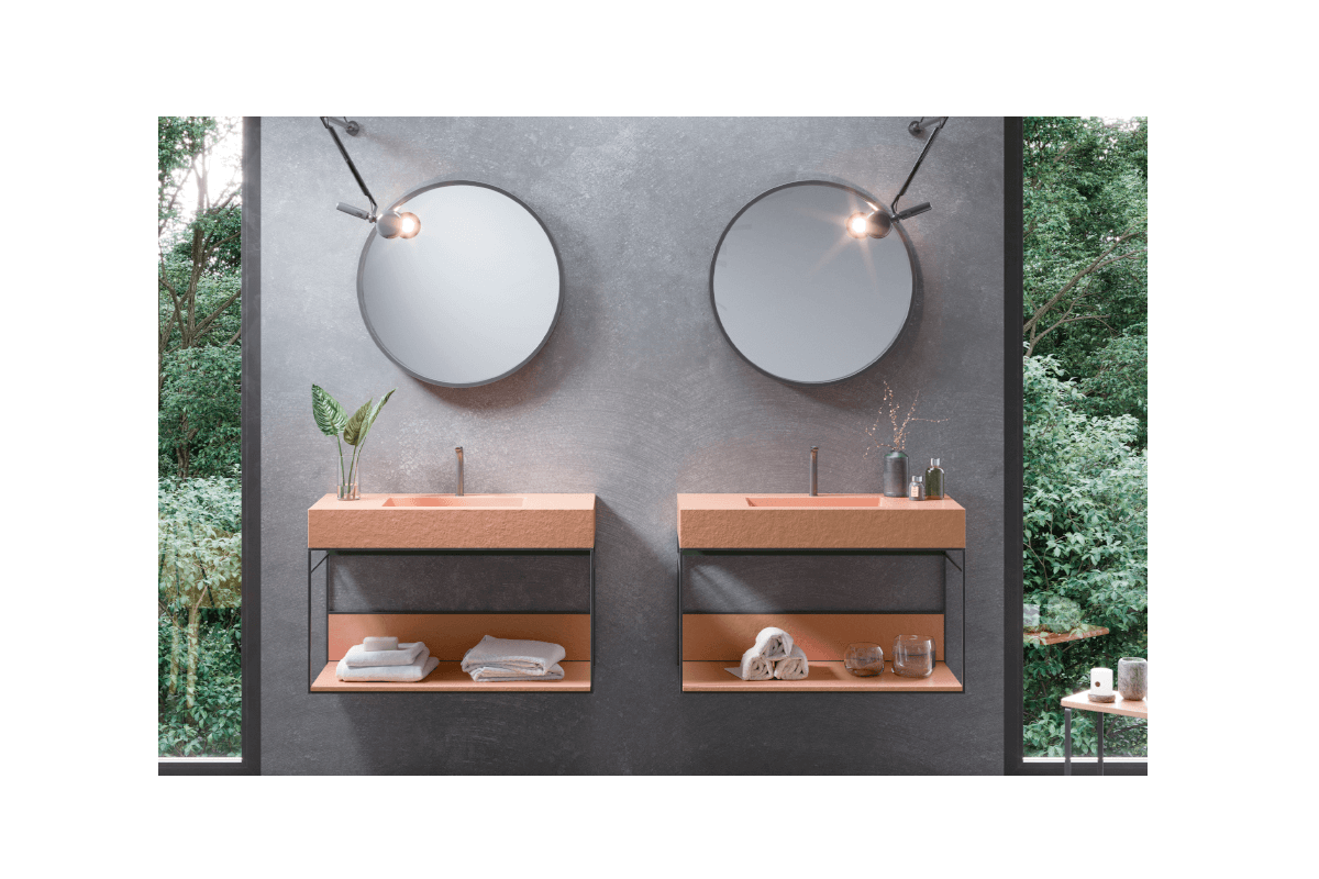 Este tono melocotón suave ha sido concebido para expresar cercanía y conexión ya que convierte las estancias en espacios cálidos y relajados. Peach Fuzz tiene la capacidad de crear espacios acogedores, haciendo un homenaje a lo natural sin renunciar a la elegancia. Ya sea en platos de ducha, encimeras, lavabos o revestimientos de pared, el color Peach Fuzz es la elección ideal para dar un toque de color a nuestro baño.