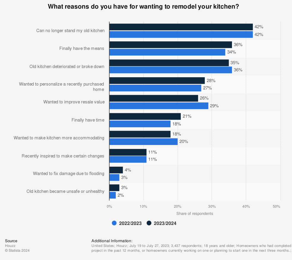 Otro motivo muy extendido entre los hogares estadounidenses es el hecho de comprarse una casa nueva. El 28% de los encuestados respondieron que han decidido remodelar su cocina porque se han comprado una vivienda nueva y la quieren personalizar.