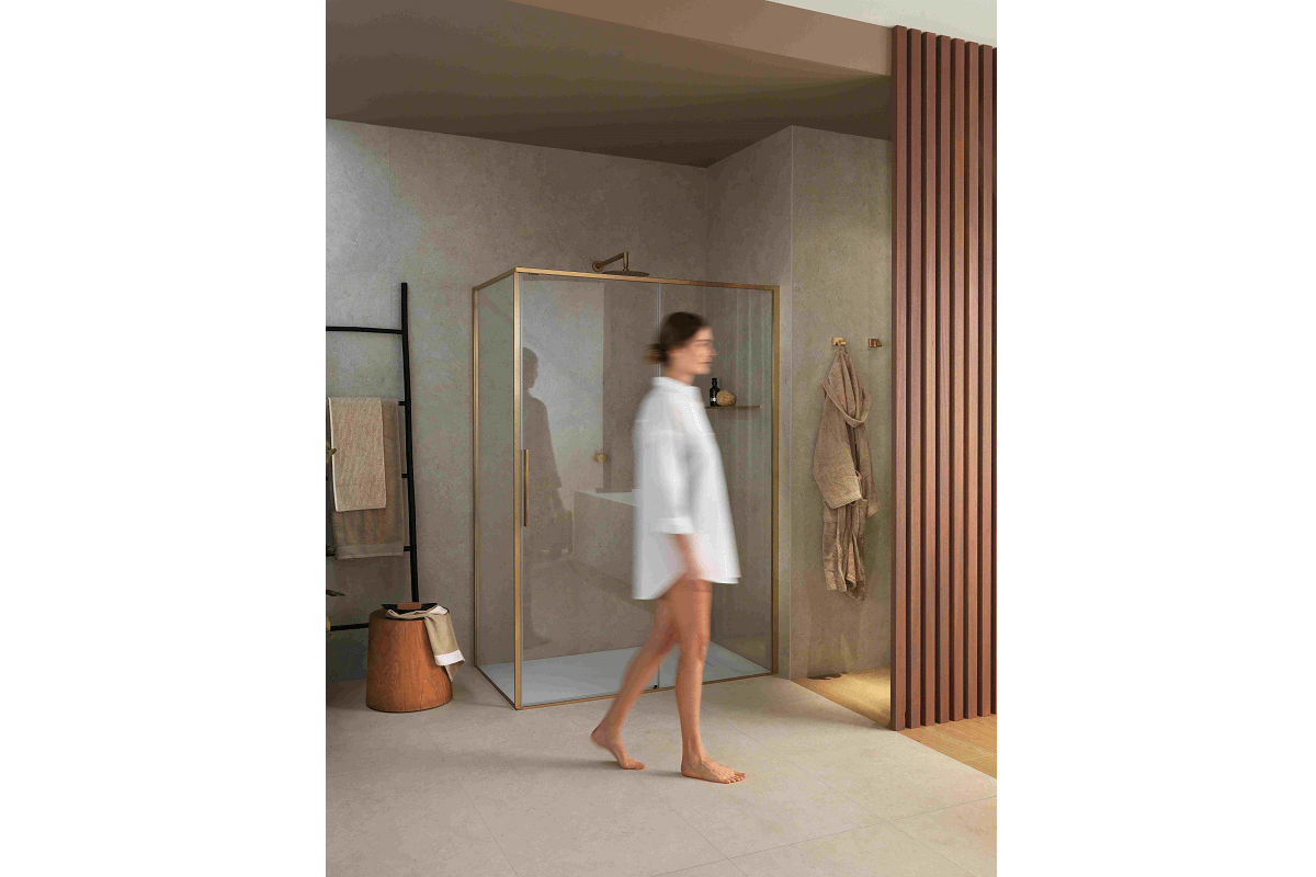 Riga se ha enriquecido con una flexibilidad cromática sin igual, reforzando la capacidad de adaptabilidad de Novellini para crear un espacio a medida en el que la mampara es la pieza central.