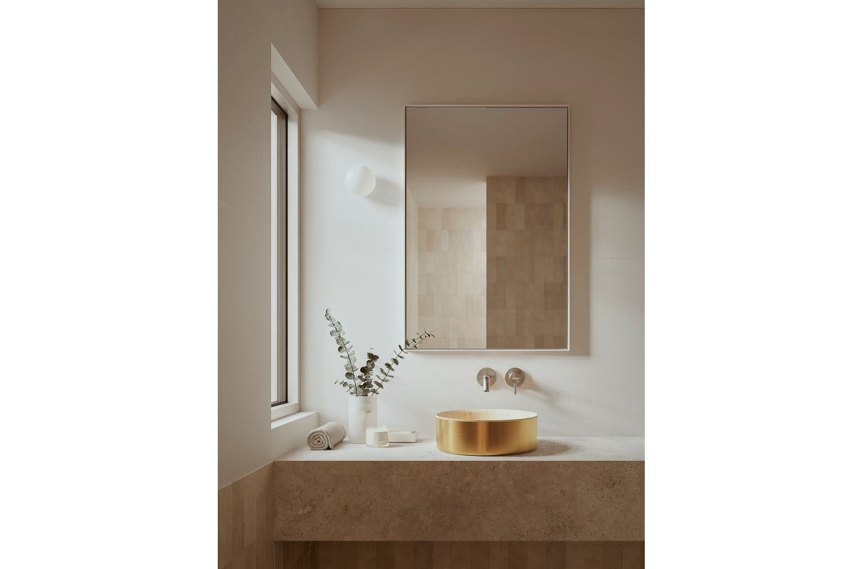 La pieza más destacada de esta nueva colección es el lavabo pedestal Kalasin que ha sido presentado recientemente en Casa Decor 2025. El diseñador de esta pieza para Bathco, Lucio Traficante, se ha inspirado en la naturaleza para su creación: "Su diseño cilíndrico emula el tronco de un árbol, creciendo hacia afuera en anillos concéntricos que imitan su crecimiento radial. La superficie, atravesada por delicadas estrías longitudinales, reproduce el patrón ascendente del crecimiento natural del árbol, creando una estructura que mejora la resistencia al estrés mecánico y evita roturas".