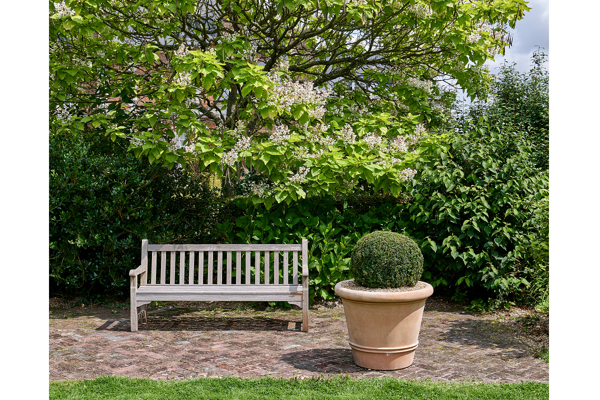 Las formas curvas del Orcio Toscano evocan patios de convento y jardines monacales. Estas vasijas aportan un aire solemne y atemporal, perfectas para acompañar setos geométricos, fuentes de piedra o bancos de hierro forjado. Un diálogo entre historia y naturaleza.
