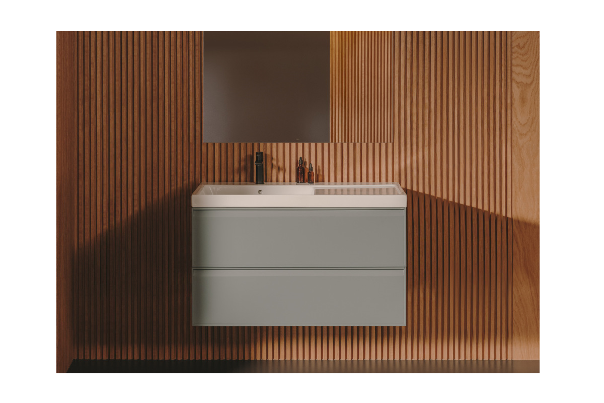 Los muebles están disponibles en medidas de 600, 800 y 1000 mm de ancho, con fondo de 455 mm y altura de 650 mm, e incorporan lavabos de Fineceramic® que añaden estilo y resistencia; en los modelos de 1000mm, su posición puede variar entre izquierda, derecha o centrada, en función de las preferencias de cada usuario. Estas soluciones se pueden combinar con columnas y armarios auxiliares de la colección Extra en los mismos acabados, ampliando así las posibilidades de almacenaje.