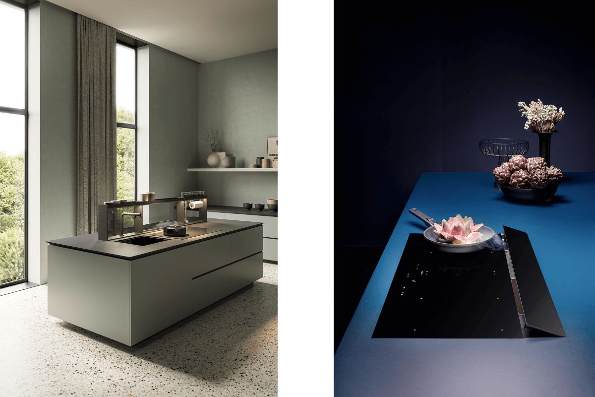 Falmec también presentará otras soluciones innovadoras en el campo de la extracción, como la nueva Level One, la campana extractora con sistema motorizado de subida y bajada que combina la aspiración y la cocción por inducción en un solo producto.