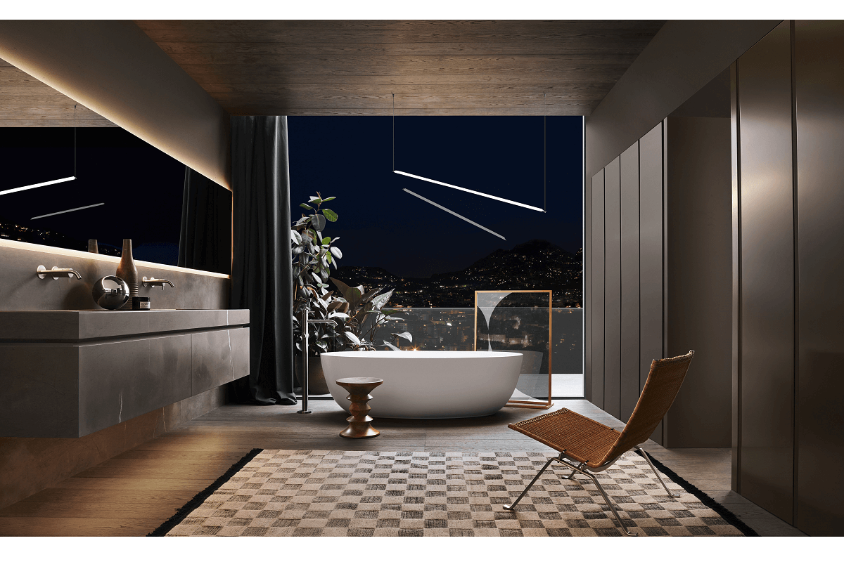 La colección destaca por la introducción de nuevos elementos, como el panel lateral de cristal para los muebles bajos y las columnas abiertas con iluminación integrada, que amplían las posibilidades compositivas y crean ambientes sofisticados y contemporáneos.