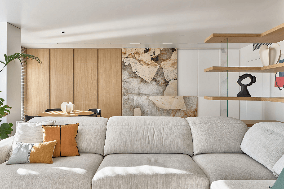 Con este proyecto, Juancho González demuestra cómo un recurso arquitectónico -la piedra natural retroiluminada- y una idea innovadora -una cocina que se oculta y una isla que se transforma en escultura- pueden redefinir la experiencia del hogar, combinando estética, funcionalidad y emoción.