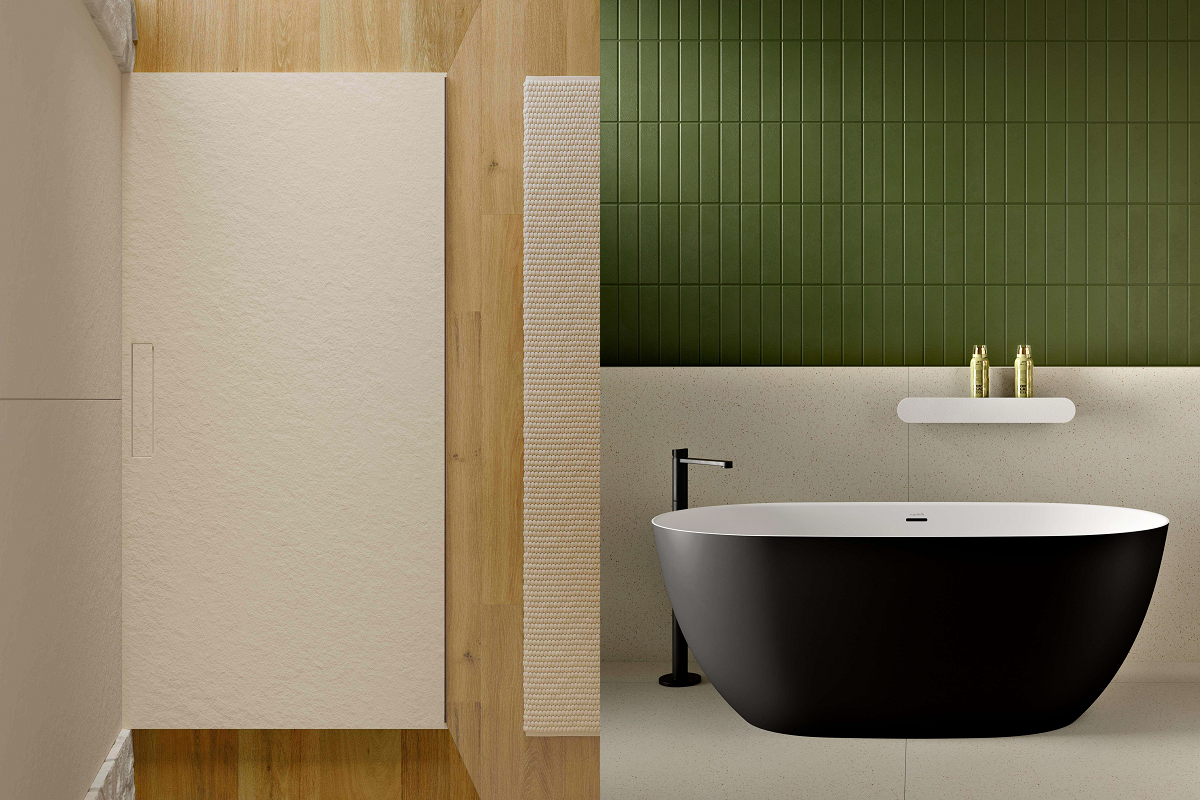 Junto a esta propuesta cromática, la firma presenta el plato de ducha Kos Slate, una pieza que combina estética y resistencia, con su textura Slate que aporta naturalidad al espacio. Su diseño minimalista, junto con las altas prestaciones del material Akron®, garantiza durabilidad, seguridad y confort. También está presente el lavabo Delia Zero, de líneas suaves, depuradas y relieve decorativo que destaca por su elegancia atemporal y versatilidad al poder instalarse sobre mueble o suspendido. Completan las novedades los nuevos estantes Art, una colección de carácter escultórico, fabricada en Akron®, que une funcionalidad y diseño, aportando orden y distinción al espacio.