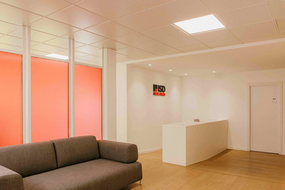 118 Studio Works ha completado la reforma integral de las nuevas oficinas de ISD Research, la división de investigación del grupo ISDIN, ubicadas en la calle Galileu 303 de Barcelona.