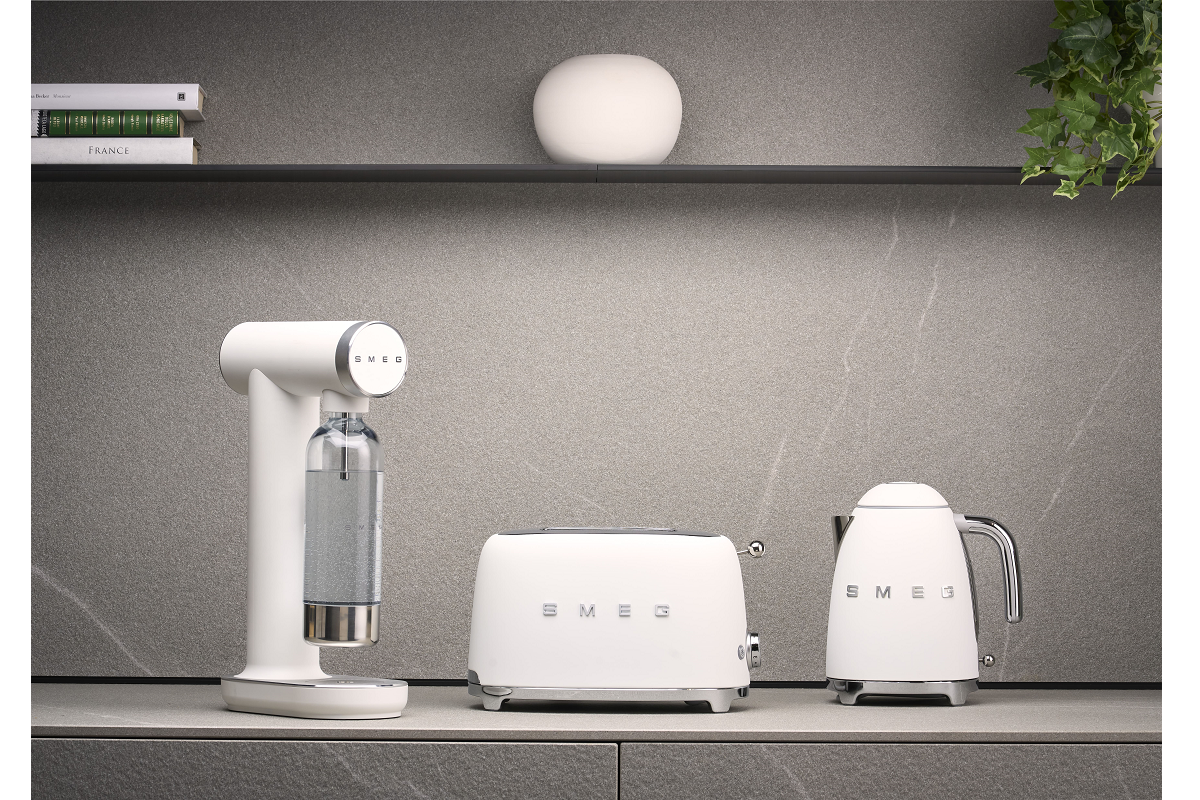 Como última novedad, Smeg presenta el Soda Maker, una gasificadora de agua manual que permite personalizar el nivel de carbonatación y disfrutar de bebidas refrescantes en casa con estilo, sin necesidad de electricidad. Su diseño compacto y sus acabados mate lo convierten en el complemento perfecto para cualquier cocina contemporánea.