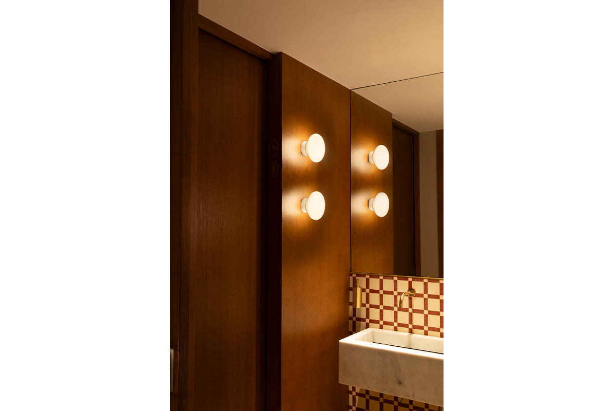 Con un guiño a las formas orgánicas, el aplique Isabelle transforma la iluminación en un elemento casi escultórico en pasillos y baños, donde la luz tamizada ayuda a crear una atmósfera de calma y confort. Su grado de protección IP 44 garantiza la resistencia a la humedad, lo que lo convierte además en una pieza ideal para baños donde la iluminación debe ser tanto funcional como acogedora. Su presencia acompaña rutinas cotidianas, momentos de serenidad y bienestar de los usuarios.