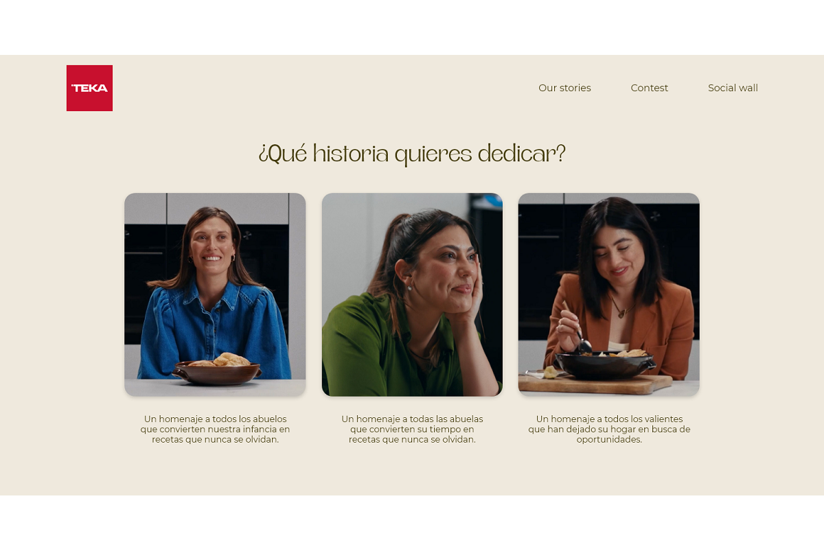 Después de emocionar al público con tres historias reales que han conectado con miles de personas, Teka invita ahora a los usuarios a hacer suya la campaña eligiendo la pieza que más le haya emocionado y dedicar el mensaje final del vídeo a alguien especial.