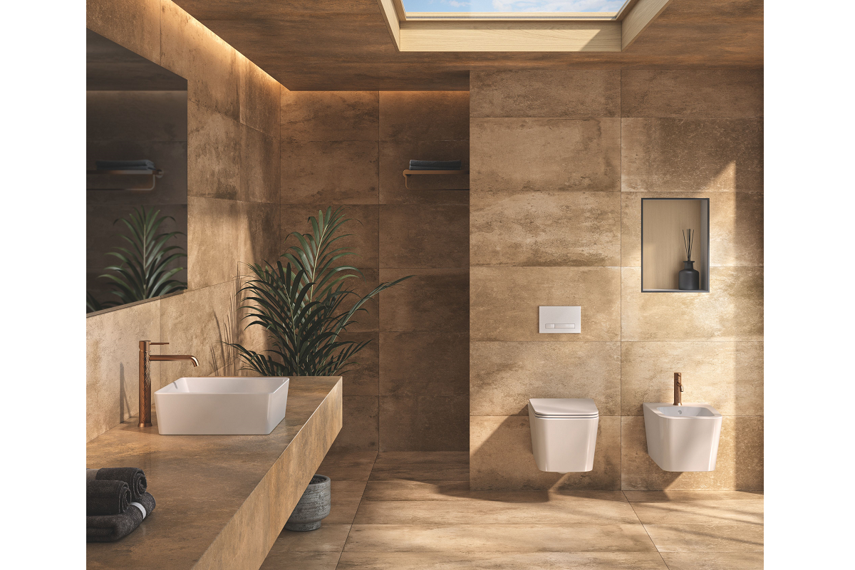 Esta colección exclusiva ofrece distintas soluciones para adaptarse a cada necesidad y estilo, con tres modelos de inodoro compacto: el inodoro completo de tanque bajo, el inodoro suspendido y el inodoro adosado a pared con tanque empotrable. La gama se completa con un bidé adosado a pared y un bidé suspendido, configurando una propuesta global coherente y muy versátil para todo tipo de baños.
