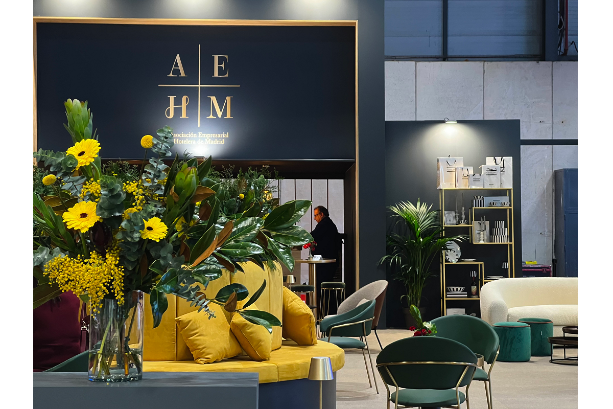 Además, la AEHM ha querido reforzar la dimensión emocional del espacio incorporando elementos florales que subrayan el carácter acogedor del diseño. En esta edición, cuenta con la colaboración de Mariana's Flowers, firma especializada en montajes y producciones florales cuyo trabajo artesanal destaca por su creatividad y por una sensibilidad estética que combina tradición y contemporaneidad. Sus composiciones, presentes en distintos puntos del stand, contribuyen a transformar el entorno en un escenario equilibrado, evocador y lleno de personalidad, reforzando, así, la conexión entre la hospitalidad madrileña y el cuidado de los detalles.