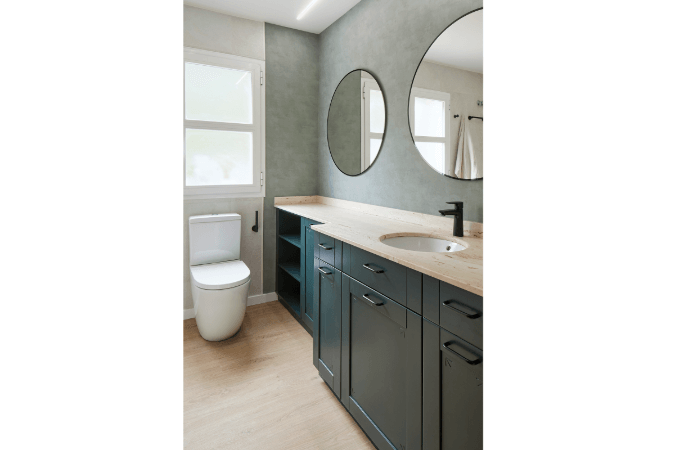 En los baños se ha seguido el mismo lenguaje. Un equilibrio sutil entre la esencia de la vivienda original y las necesidades contemporáneas, creando espacios de uso diario que también son un placer para los sentidos.
