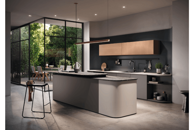 Cocina realizada con diferentes diseños del nuevo acabado mate ST17.