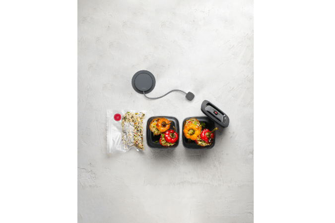 Al integrarse sin ocupar espacio en la encimera, el QVac se convierte en un aliado silencioso que prolonga la vida útil de frutas, verduras, carnes o salsas hasta tres veces más en comparación con el almacenamiento convencional, preservando su sabor y textura naturales.
