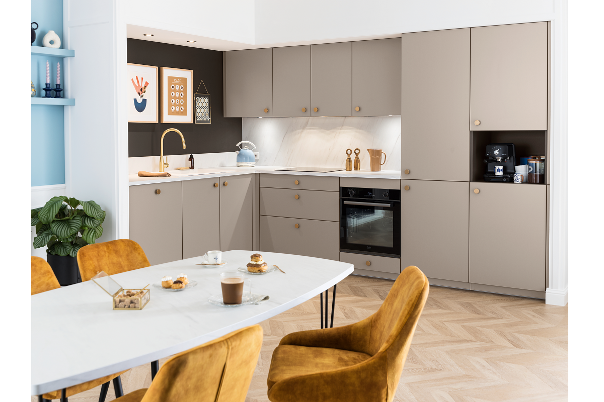SoCoo'c lo interpreta en ambientes como Latte y Opale, que transforman la cocina en un entorno confortable que se integra de forma natural con el comedor.