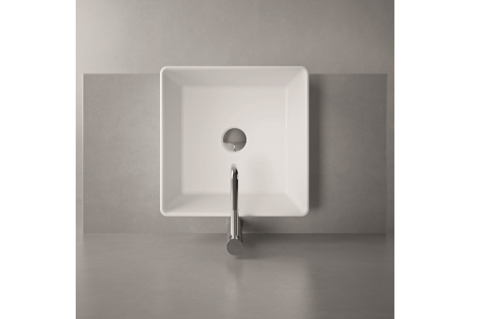 Concebido como un lavabo de sobre encimera, el modelo KAISER cuadrado permite una amplia variedad de combinaciones con grifería, desde soluciones empotradas a pared hasta griferías de caño alto o grifería de lavabo monocolumna de pie. Esta versatilidad facilita su integración en distintos planteamientos de diseño, ofreciendo libertad compositiva y adaptándose a las necesidades de los proyectos de baño más exigentes, tanto en el ámbito residencial como en el contract.