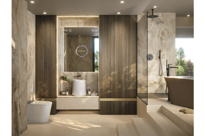 Noken ha presentado sus últimas novedades para el espacio de baño en la 32ª Muestra Internacional Porcelanosa, celebrada recientemente en las instalaciones de Porcelanosa en Vila-real, Castellón, anticipando una evolución clara hacia un baño entendido como experiencia sensorial integral, articulada bajo el concepto FLO·W – Smart is feeling. La firma profundiza en una visión donde la tecnología no se impone, sino que acompaña, situando la innovación al servicio del bienestar y de una experiencia más intuitiva y emocional del espacio.