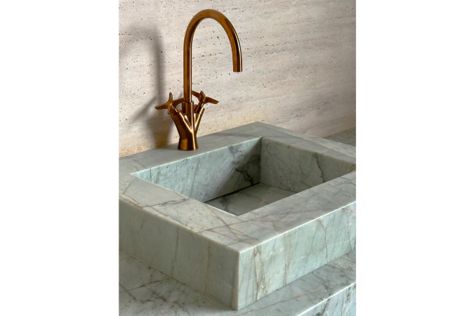 El cobre cepillado aporta una calidez singular y un matiz decorativo de gran elegancia, capaz de convertir la grifería en un elemento protagonista dentro del espacio. Su presencia enriquece la colección y acentúa su carácter arquitectónico y ornamental.