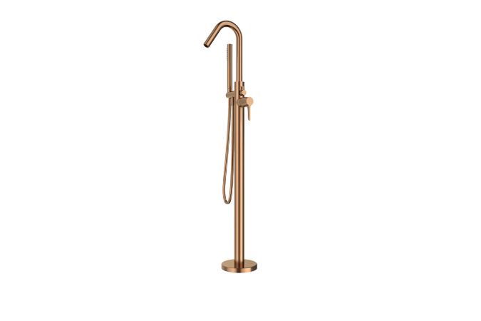 Monocolumna de pie para bañera, de la colección Adagio, acabado cobre cepillado, de ramonsoler.