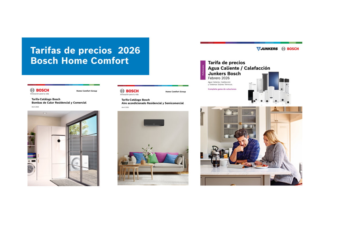 Bosch Home Comfort anuncia la entrada en vigor, el próximo 1 de abril de 2026, de sus nuevas tarifas de precios para sus soluciones de calefacción, agua caliente sanitaria y climatización. Esta actualización se articula en dos documentos diferenciados, la Tarifa Junkers Bosch y la Tarifa-Catálogo Bosch de climatización y bombas de calor, que incorporan mejoras orientadas a facilitar el trabajo diario del profesional, con un acceso más ágil a la información y una organización más especializada por gamas de producto.