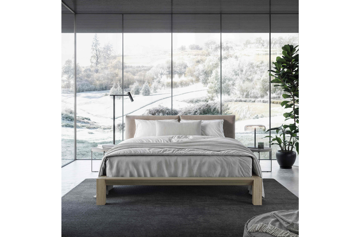 Para quienes buscan una mayor expresión formal, la cama y el cabezal AD trasladan al dormitorio el lenguaje arquitectónico de la colección homónima de Day Collection. Líneas limpias, geometrías precisas y el característico bisel en el plano superior definen una pieza con identidad propia. Su versatilidad permite múltiples configuraciones, desde cama completa hasta cabezales independientes combinables con distintas bases, manteniendo siempre una coherencia formal. La colección se completa con una base que incorpora iluminación inferior perimetral, aportando una atmósfera cálida y envolvente.