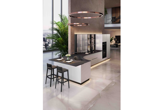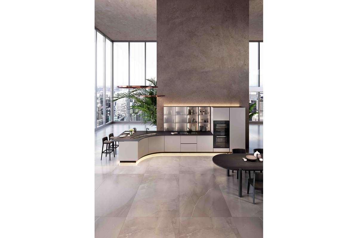 Virgola de ARAN Cucine, la cocina que te envuelve con su isla curvada