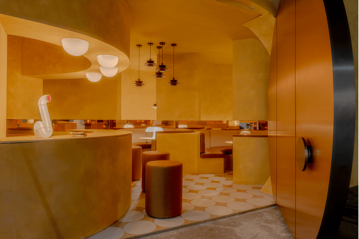 Concebido como un homenaje al arquitecto y diseñador Mario Bellini, Cateto Club mira, sin nostalgia, a la Costa del Sol de los años 60 y reinterpreta el 'Estilo del Relax' desde una perspectiva contemporánea. Un universo de curvas y colores vibrantes, con guiños al diseño radical, da forma a un espacio que se articula en torno a la geometría del cilindro, presente en distintas escalas y elementos. El resultado es un entorno profundamente arquitectónico, donde la ausencia de ornamento pone en valor la relación entre volumen, luz y superficies. Una propuesta que recupera lo vernáculo (acabados rugosos y texturas honestas) como lenguaje visual, y referencias del estilo mediterráneo donde la naturalidad imperfecta definía la estética. Materiales locales, destellos metálicos y una arquitectura fluida construyen un pequeño paraíso retrofuturista, una auténtica arquitectura souvenir.