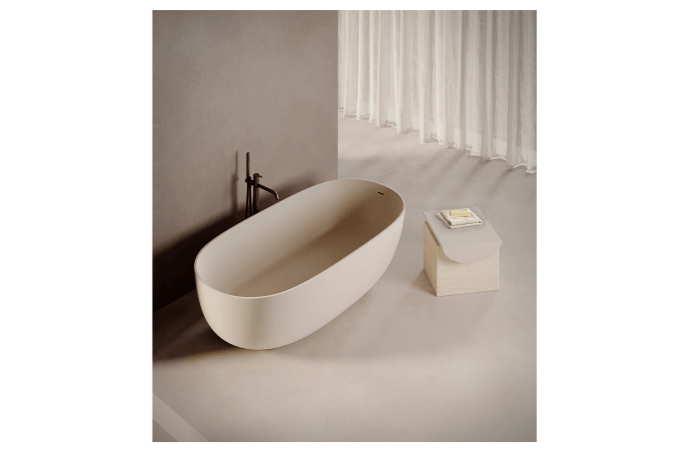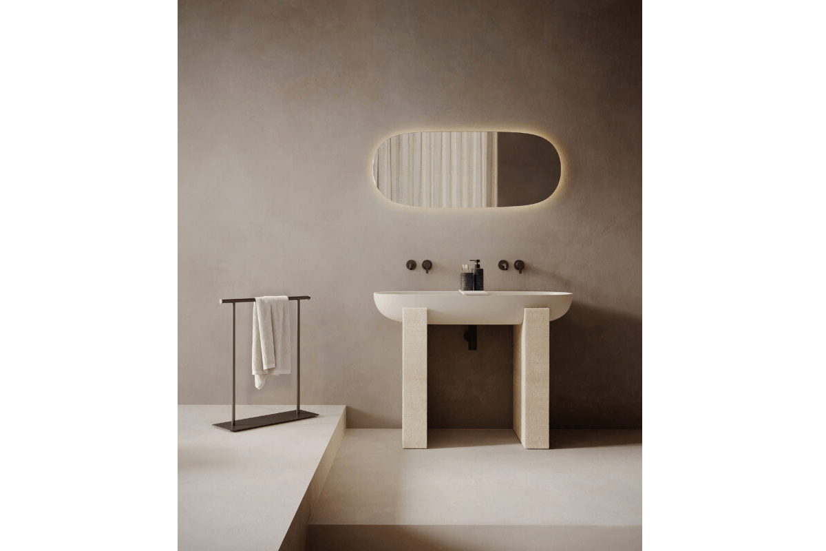 La colección se ve enriquecida con la incorporación de un nuevo material: la piedra caliza abujardada, que aporta solidez, equilibrio y una elegancia orgánica. La madera también adquiere un papel destacado con la nueva textura 'Carved', que aporta calidez y profundidad.