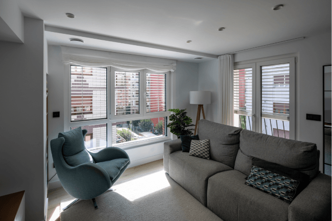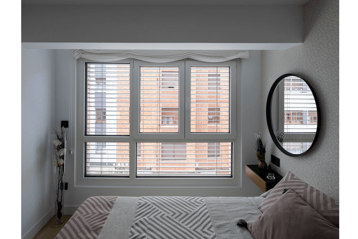 El sobrecalentamiento en verano representaba un reto, ya que la vivienda carece de protecciones fijas como terrazas o voladizos. La solución, en el caso de este apartamento de Portugalete, llegó gracias a las persianas venecianas exteriores Lamisol III de Griesser, motorizadas y orientables.