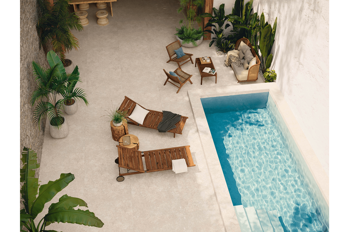 La madera aporta calidez, el composite destaca por su fácil mantenimiento, mientras que la piedra y los suelos cerámicos ofrecen gran resistencia. El césped artificial, por su parte, es una opción práctica y cómoda para crear zonas verdes sin apenas mantenimiento.