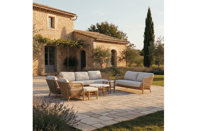 Materiales como el aluminio, la resina o la madera tratada son perfectos para el exterior por su durabilidad. Los conjuntos modulares, mesas plegables o los muebles con almacenaje son muy útiles para optimizar espacios.