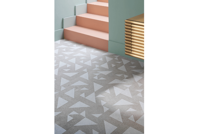 La cerámica avanza en la misma dirección. NovaBell se acerca al Neo-Decó a través de superficies rítmicas y geometrías lineales, donde el rigor de las texturas tridimensionales y los colores empolvados crean un equilibrio visual.