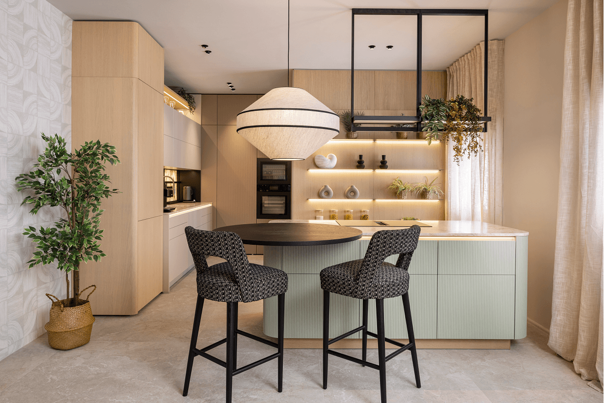 El espacio Leicht propone una cocina que se funde con la arquitectura del hogar, generando un entorno continuo, equilibrado y silencioso. Inspirado en la estética hygge, el proyecto apuesta por materiales naturales, tonos suaves y una composición que transmita calma y bienestar.