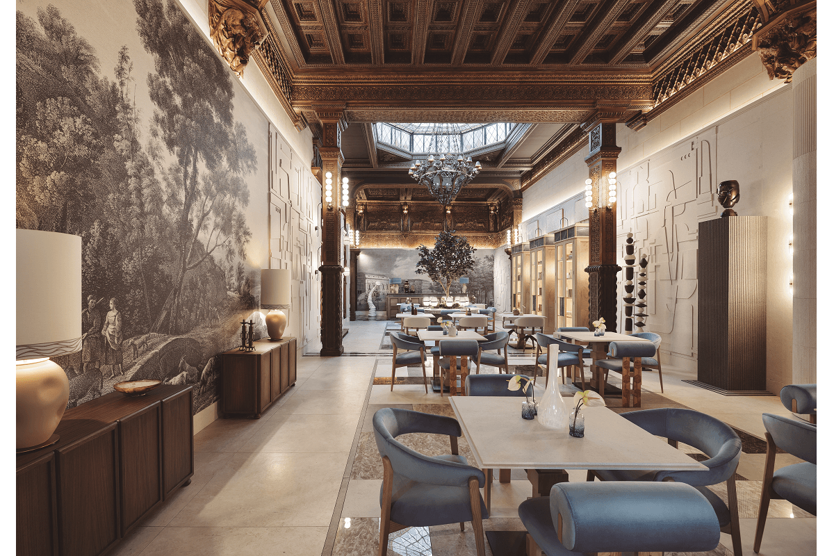 El restaurante 'The Silent Chapel', espacio diseñado por el interiorista Raúl Martins para Iris Ceramica Group, ha sido instalado en la antigua capilla desacralizada del palacio del siglo XIX que acoge la manifestación en el corazón del Barrio de las Letras. Un entorno sugestivo en el que el diálogo entre la memoria arquitectónica y el lenguaje contemporáneo encuentra equilibrio a través de materiales capaces de integrarse con naturalidad en la estratificación del espacio. Sapienstone firma aquí algunos de los elementos centrales del área dedicada a la acogida: la barra está realizada en Jatoba Brown 4D Lapped en espesor de 20 mm, una superficie de carácter matérico y profundo que dialoga con los trabajos en madera a medida; la cocina, por su parte, se realza con Calacatta Aureo 4D, acabado Cashmere en 12 mm, elegida por su elegancia luminosa y su capacidad de reinterpretar en clave contemporánea la estética del mármol.