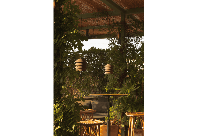 Más allá de su función estructural, los discos también actúan como filtros cromáticos. Disponibles en tonos beige, marrón y naranja, inspirados en los paisajes mediterráneos, su color modifica sutilmente la tonalidad de la luz emitida. Cuando se combinan en una misma composición, los discos recrean una gradación cálida que recuerda a la transición cromática del atardecer mediterráneo, aportando profundidad y matices al ambiente nocturno. Suspendidas a diferentes alturas o alineadas en secuencia, sus luces dibujan un ritmo suave en el paisaje nocturno: puntos luminosos que flotan en el espacio y acompañan la arquitectura y la vegetación sin imponerse sobre ellas.