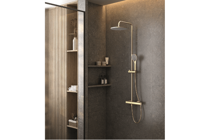 La novedad principal del Catálogo de Grifería 2026-2027 de Genebre es la nueva Columna de ducha serie KLOE. Un estiloso set de ducha de columnas monomando extensibles en cuatro acabados distintos para que combinen con la decoración de cualquier baño: negro, cromado, brushed PVD Gold y brushed metal. Las nuevas columnas de ducha de Genebre poseen un sistema innovador al incluir la función de inversor en el propio cartucho, evitando así un inversor externo o un segundo mando.