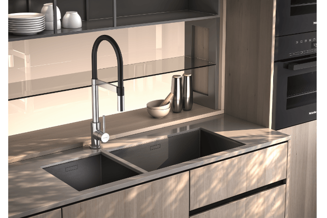 En nuevo portfolio de Genebre cuenta también con novedades destacadas en Grifería de Cocina como el Grifo de Cocina monomando 3 vías GE-DUAL con caño flexible Serie TAU. Un grifo para equipos de tratamiento de agua (disponible en acabado cromo y negro mate) que ofrece agua corriente y agua filtrada desde una sola maneta, otorgando un plus de funcionalidad, tanto en cocinas domésticas como en cocinas profesionales. Su caño flexible multidireccional, orientable, ergonómico y de silicona higiénicagarantiza una utilización cómoda y su sistema de anclaje magnético facilita que el tubo quede sujeto al grifo. (Ver video)