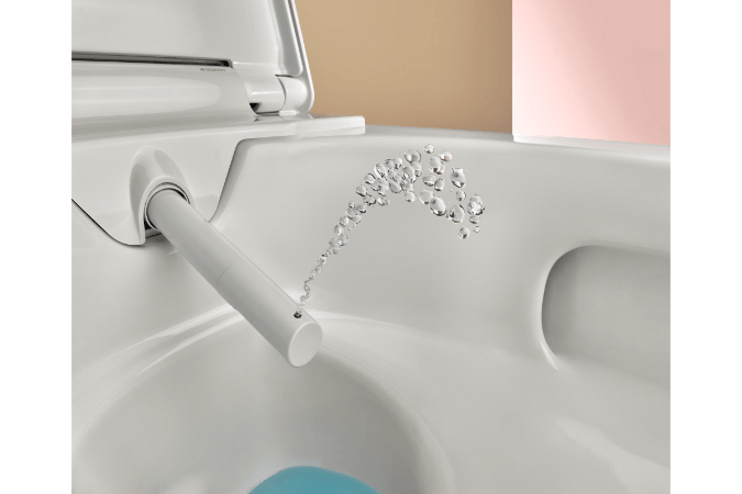La exclusiva tecnología de ducha patentada WhirlSpray, limpia al usuario de manera extremadamente delicada y eficiente mediante un suave chorro de agua vaporizada, gracias a la mezcla de agua y aire. Además, el chorro de agua forma una espiral que asegura una higiene profunda y eficaz.