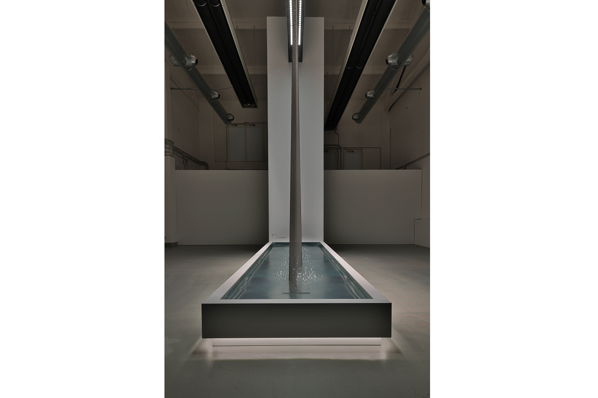En la Semana del Diseño de Milán, el estudio suizo de arquitectura y diseño atelier oï traslada esta competencia principal de Geberit a una interacción sensorial de agua, luz, sonido y movimiento. La instalación temporal, conocida como RŌS, consta de unos 300 finos muelles de acero inoxidable extendidos por el espacio para formar una estructura brillante. Las gotas de agua se deslizan a lo largo de los muelles siguiendo trayectorias definidas, pero su comportamiento sigue siendo variable: a veces rápido, a veces lento, deteniéndose, dividiéndose o fusionándose. El resultado es una tensión entre precisión y poesía, entre guía técnica y libertad vital. "Nos interesa la interacción entre control y libertad. Cuando el agua muestra su carácter y sigue formando parte de una estructura, emerge una belleza especial", afirma Aurel Aebi, cofundador de atelier oï.