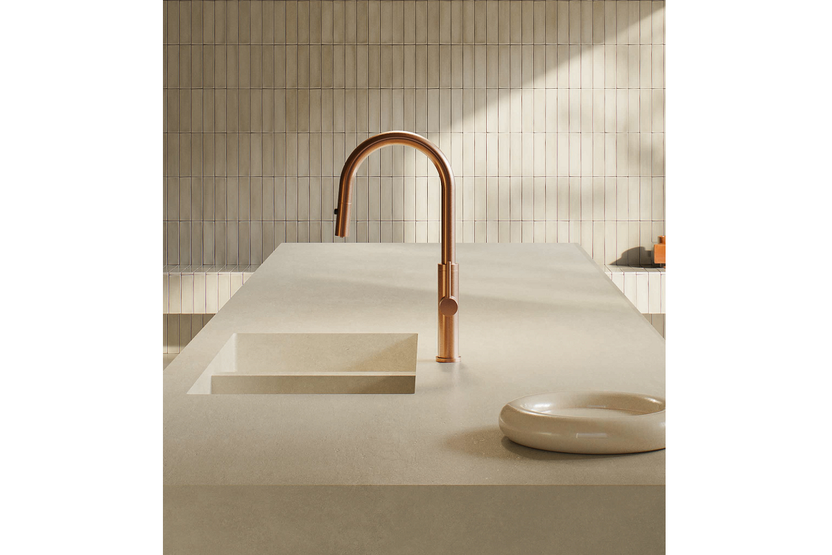 Estas terminaciones de última generación no solo enriquecen la propuesta estética del grifo, sino que garantizan prestaciones técnicas de alto nivel. Los acabados PVD proporcionan superficies de alta dureza y color estable, con resultados hasta 10 veces más resistentes que el cromado, según ensayo certificado de niebla salina. Así, Pure Water ofrece una combinación especialmente valiosa de belleza duradera, fiabilidad y resistencia para un espacio tan exigente como la cocina.