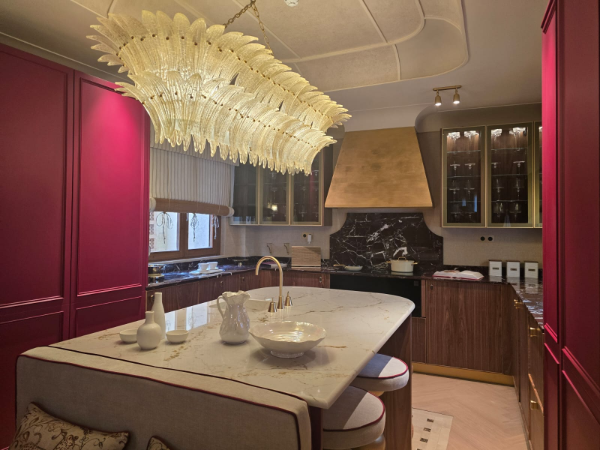Por su parte, Inmaculada Recio presentó su Espacio Trae – Cocina La Cuisine Bourgogne Dorée. Relató que su elección del herraje fue "amor a primera vista". Inicialmente, su propuesta no contemplaba tiradores, al combinar piedra natural con superficies de Cosentino, pero la incorporación de piezas en piedra le permitió generar contraste sobre el color de las puertas. La diseñadora puso el foco en la mezcla de tres materiales tipo mármol que dialogan entre sí, así como el uso de tiras LED de la marca con propiedades antibacterianas. En el diseño del tirador ha participado el presitigioso cocinero Pepe Rodríguez.