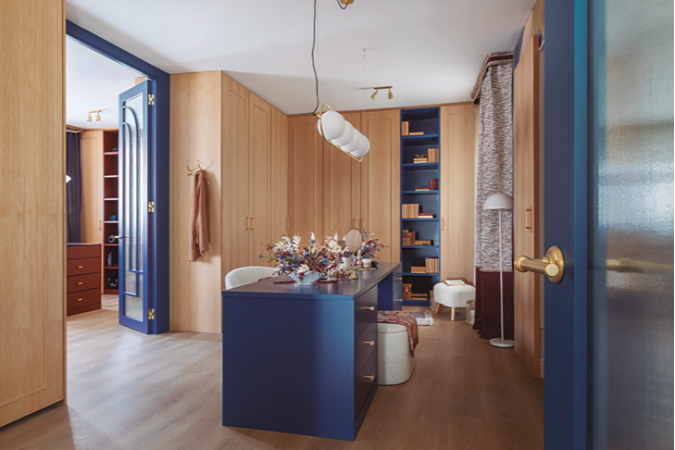 Ana Prado, responsable de Comunicación de SC Handles & Lighting, trasladó el proyecto de Ana Guillén para el Espacio Sanrafael – Vestidor Cuando nadie mira, cuya autora no pudo asistir. El vestidor se divide en dos áreas y gira en torno al concepto de intimidad, articulado a través del personaje Noa. El espacio integra zonas para guardar joyas, vestirse o entrenar, con un relato en el que cada detalle responde a su día a día. La propuesta combina madera natural con tonos burdeos y azul, incorporando tiradores dorados de la colección THE HUG. En este contexto, los armarios y puertas se integran en la arquitectura, con herrajes que no solo se ven, sino que se perciben al tacto.