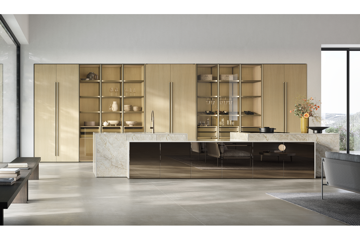 Entre las novedades destaca una actualización de la línea Evolution, que amplía su oferta y se configura como un sistema modular de elementos que pueden combinarse entre sí, adaptándose a diferentes lenguajes estéticos. Para completar la propuesta, se incluyen mostradores de bar, paneles de boiserie y módulos de almacenamiento para la zona de estar, elementos clave para dar forma al espacio habitable. Las nueve distribuciones presentadas en la exposición reflejan este enfoque y encajan en una visión integral del hogar, donde los límites entre los espacios se vuelven más fluidos y el proyecto evoluciona hacia una narrativa cohesionada construida a través de una combinación de materiales, colores y proporciones.